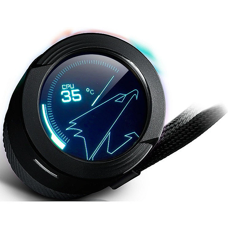 El AORUS WATERFORCE X 280 no solo sobresale por su rendimiento, sino también por su estética revolucionaria. La característica central es su impresionante pantalla LCD a todo color de 60x60 mm integrada en el bloque de la CPU. Esta pantalla te permite personalizar completamente la apariencia de tu sistema, mostrando información del sistema en tiempo real, texto personalizado, imágenes estáticas e incluso videos.